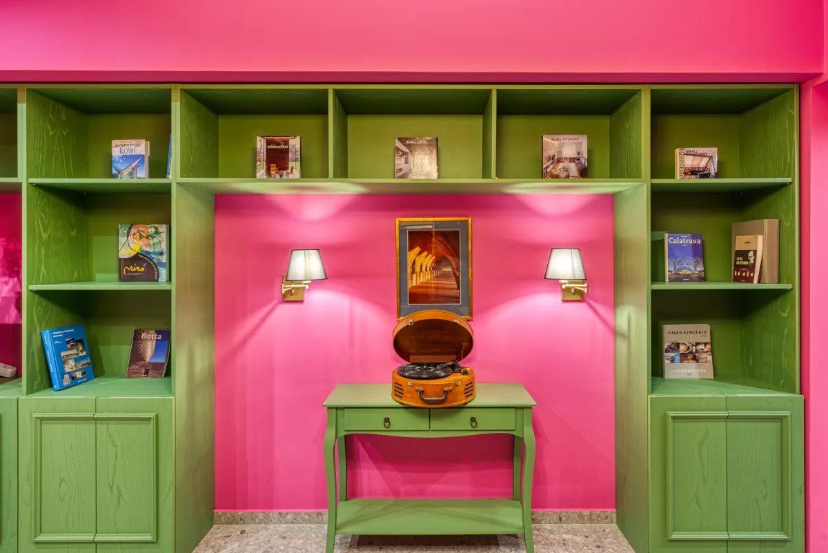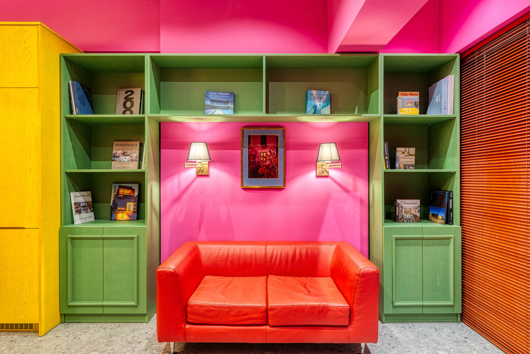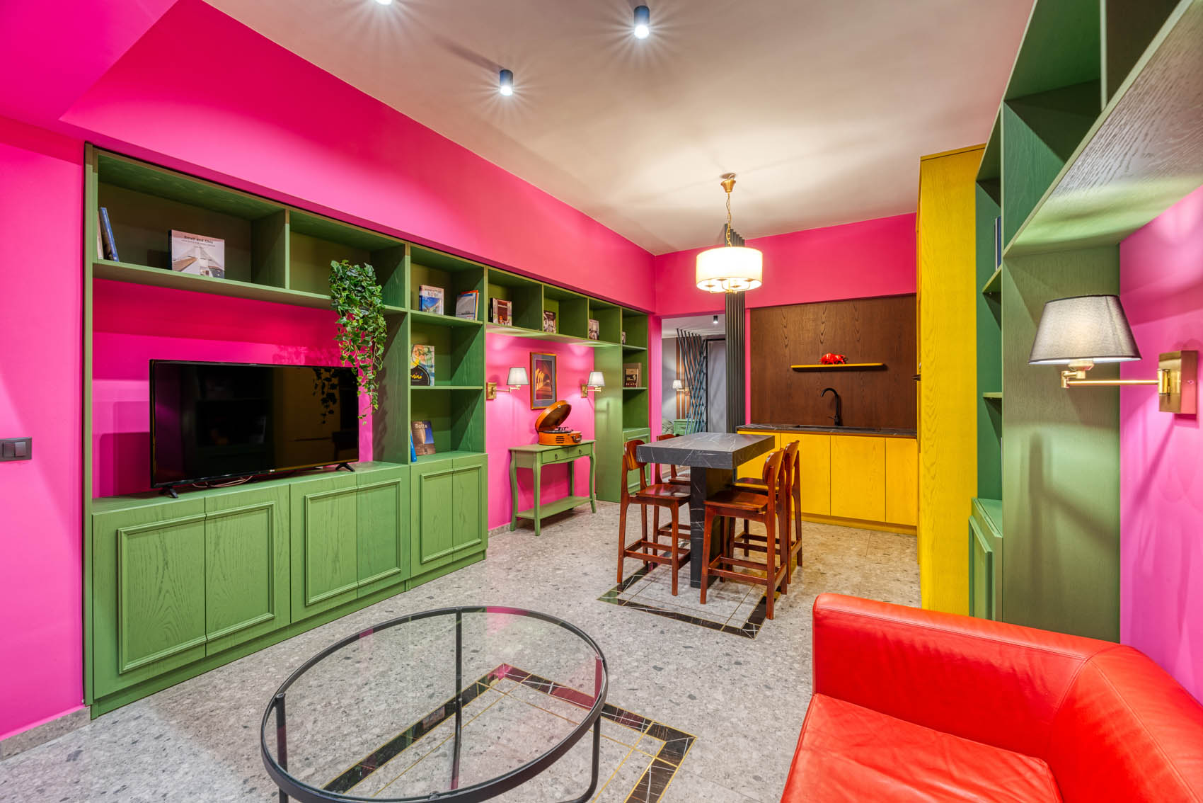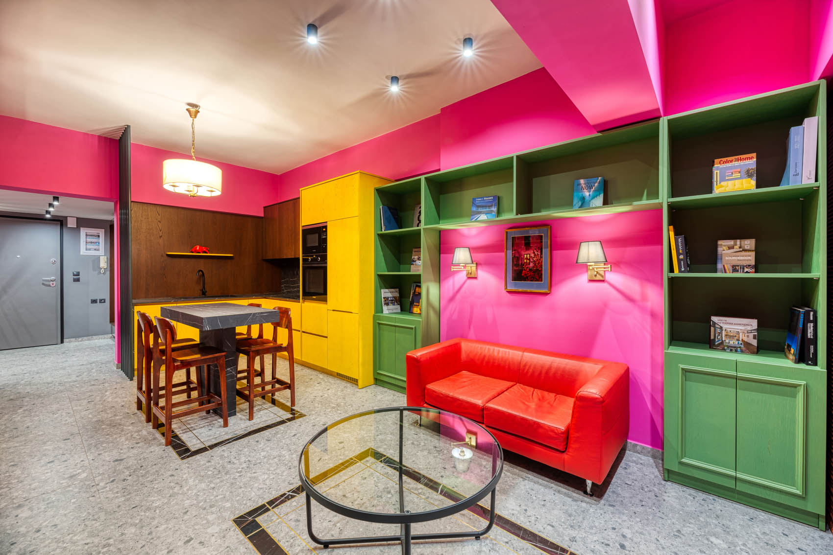 Η μελέτη αφορά διαμέρισμα εμβαδού 44,65 μ2 στην πόλη της Λάρισας, σε έναν από τους κεντρικούς άξονες της πόλης, την οδό Παναγούλη. Το συγκεκριμένο loft έχει ενιαίο σχεδιασμό στους χώρους του και δεν υπάρχουν χωρίσματα μεταξύ τους. Στο λιγότερο φωτεινό σημείο του διαμερίσματος όπου βρίσκεται και η είσοδος υπάρχει το κρεβάτι σε υπερυψωμένο ξύλινο δάπεδο. Στην επένδυση των φύλλων των ντουλαπών χρησιμοποιήθηκε καθρέπτης ώστε να δίνει επιπλέον βάθος στο χώρο. Απέναντι από το κρεβάτι υπάρχει το λουτρό στο οποίο κυριαρχεί η μπλε απόχρωση και η ντουζιέρα με μία όψη προς την κρεβατοκάμαρα με την εντυπωσιακή κόκκινη διαφάνεια.